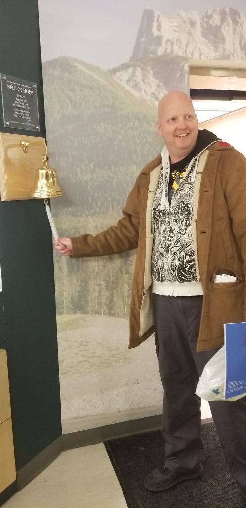 However, we’ve had a bit of a set back with Dave. Everything was going just fine with treatment ending on November 26 where he rang the bell signalling that he was done with radiation and chemotherapy combination. He was excited to be done with that phase of things and had big plans for the weekend to go out hunting (try to get a deer) and finish setting up the Christmas decorations.