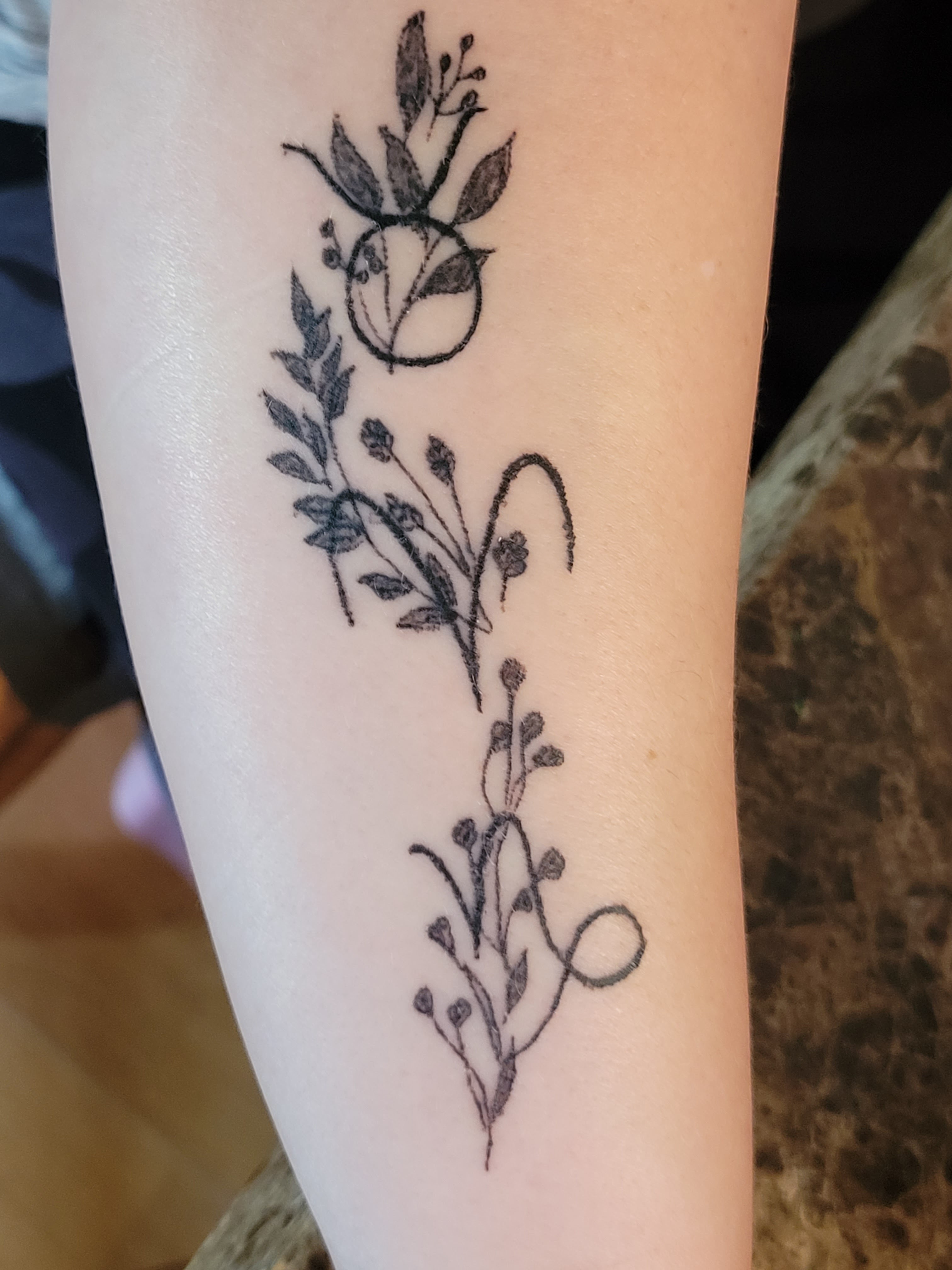 On Friday before going down to the Wapiti River I got my first tattoo. Something that Dave and I had talked about getting together, but we couldn’t figure out what to get and then he got sick so we didn’t get to do that before he passed. I wanted something simple that represented the kids and I. Anything that I got related to the zodiac or astrology that represented me also represents Dave as we were only 3 days and two years apart in age.